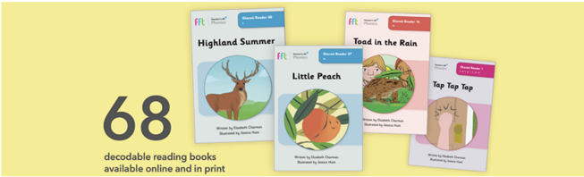 It is important that children don't simply know their phonics but can apply that knowledge to the skill of reading itself. In the SFA programme, children apply their developing phonic knowledge and skill by reading the shared readers. These are carefully aligned to the phonics lessons and allow children to practise reading the new and recently taught GPCs as well as the Common Exception Words to which they have been introduced. There are 68 fully decodable reading books to support the effective teaching of phonics from Reception to the end of Year 1. Each Shared Reader is designed to be read over five days.